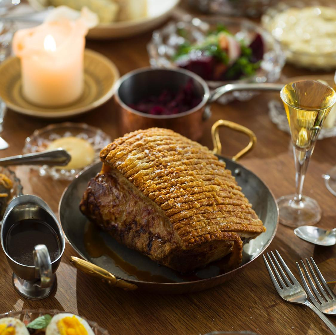 En klassisk julemenu med alle traditionerne. Hertil vores hjemmelavede snaps og brændevin, gode ærlige råvarer, de velkendtedufte fra køkkenets gryder og ægte julehygge.